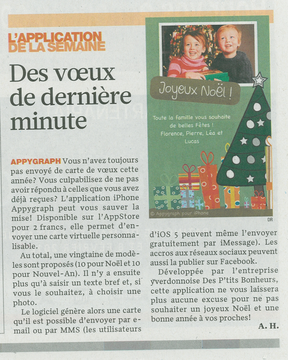 Le Temps: "Les p'tits génies de l'appli"